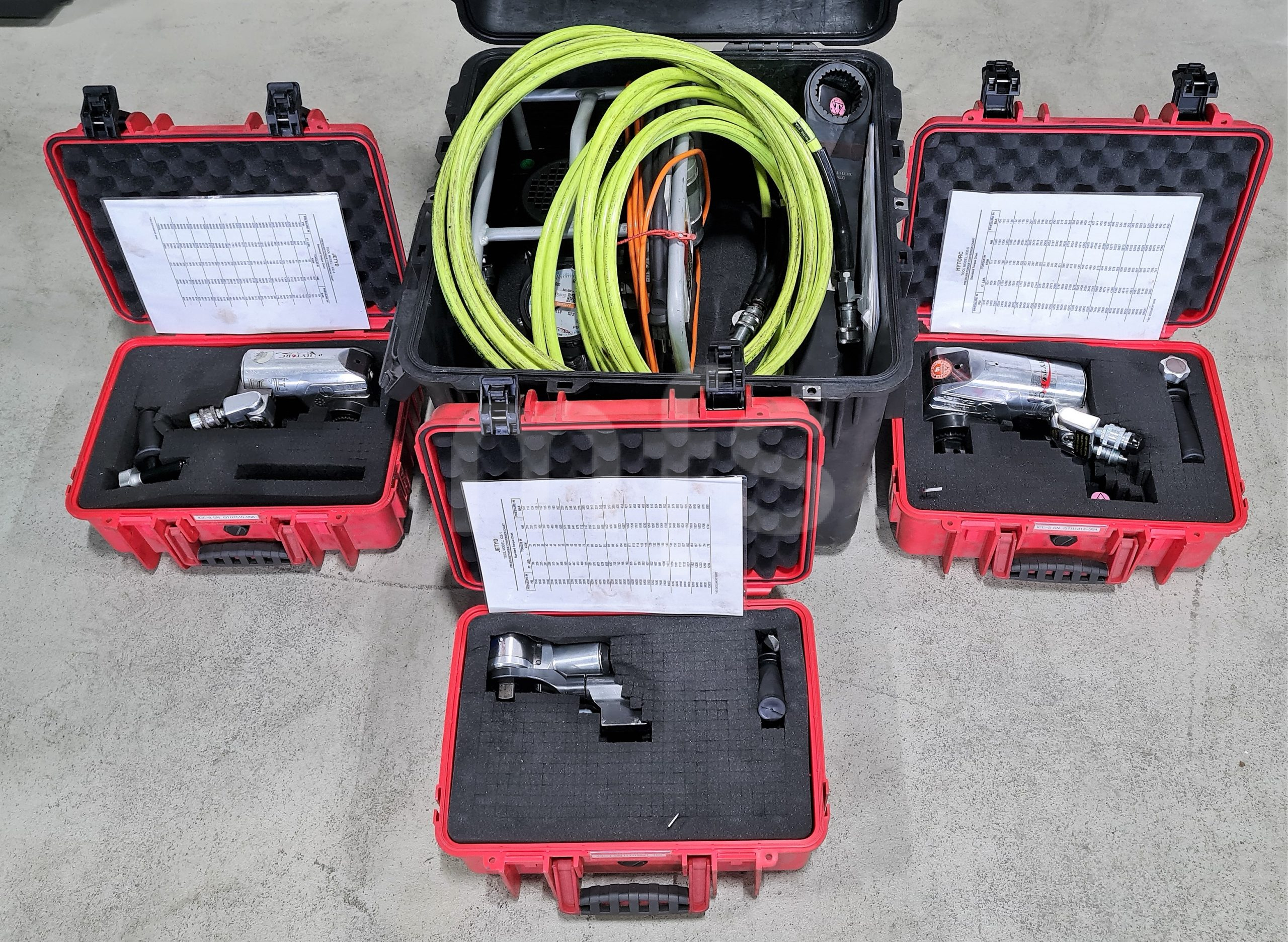 Hytorc system, including all needed sockets, high tension torque system to untighten and tighten bolts end/or nuts faster, safer and more accurate.